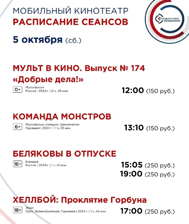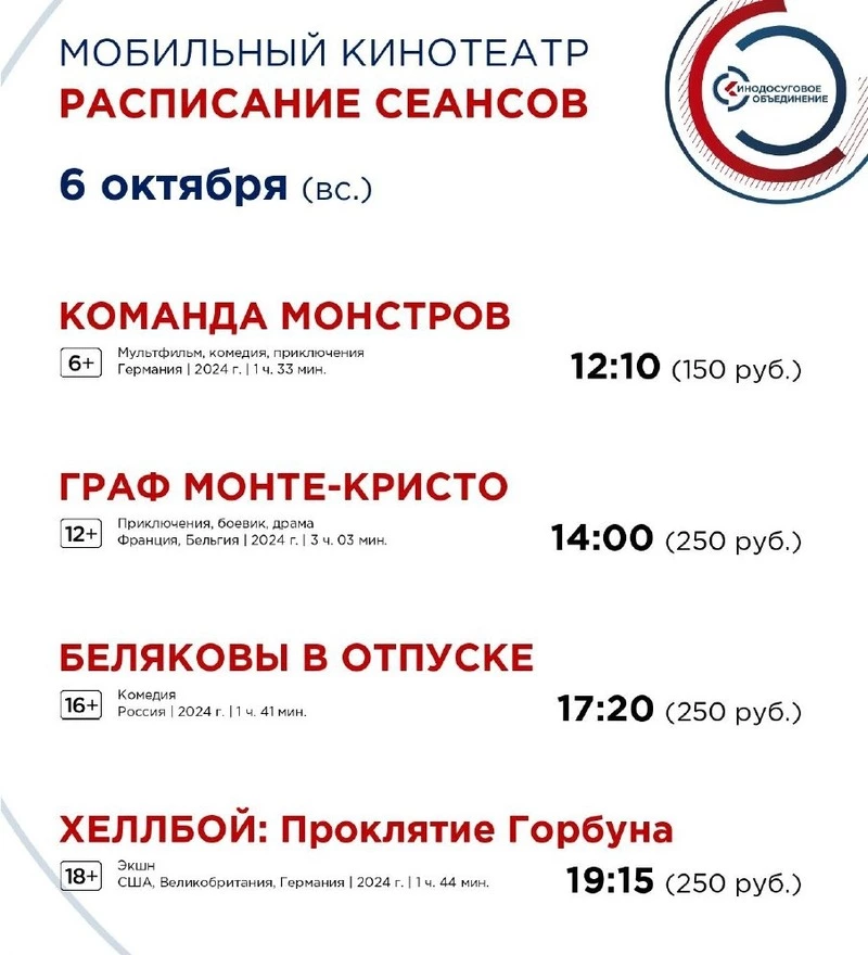 ✔️Для пенсионеров действует программа «Сахалинское долголетие». Для держателей Единой карты Сахалинца, возрастной категории 55+ просмотр бесплатный. Молодежь в возрасте от 14 до 22 может приобрести билеты по Пушкинской карте. О всех льготных категориях уточняйте в кассе.
