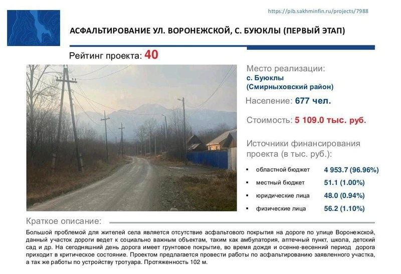 - Асфальтирование ул. Воронежской, с. Буюклы (первый этап)