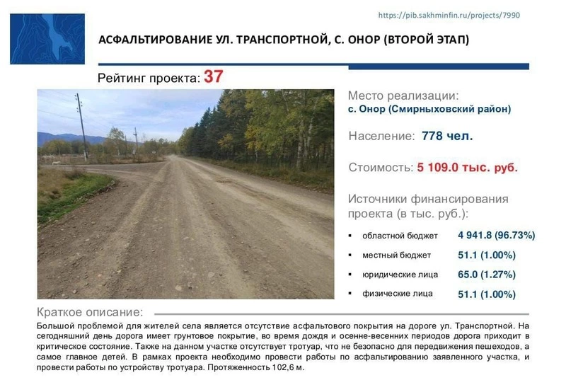 - Асфальтирование ул. Транспортной, с. Онор (второй этап)