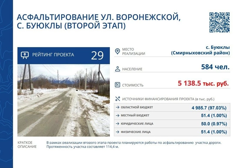 3️⃣ По улице Воронежской в селе Буюклы планируются реализации второго этапа проекта работы по асфальтированию участка дороги. Протяженность участка составляет 114,4 м.