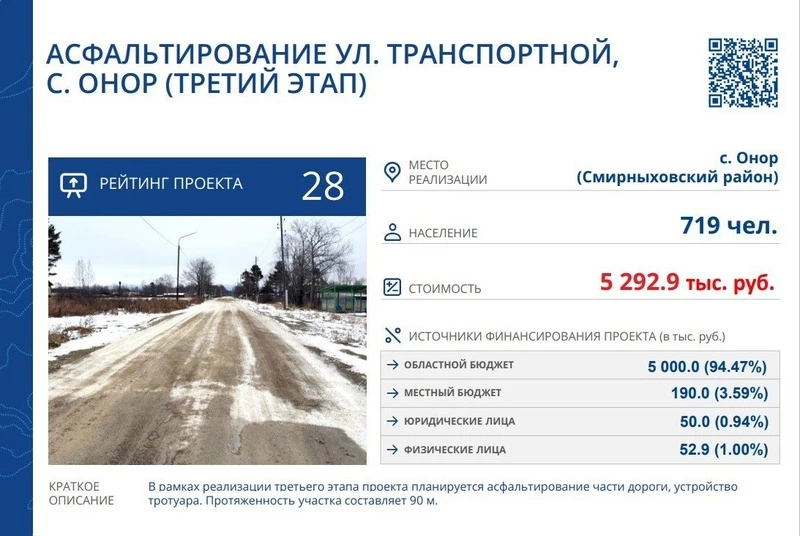 2️⃣ В рамках реализации третьего этапа проекта планируется асфальтирование части дороги по улице Транспортной в селе Онор и устройство тротуара. Протяженность участка составляет 90 м.